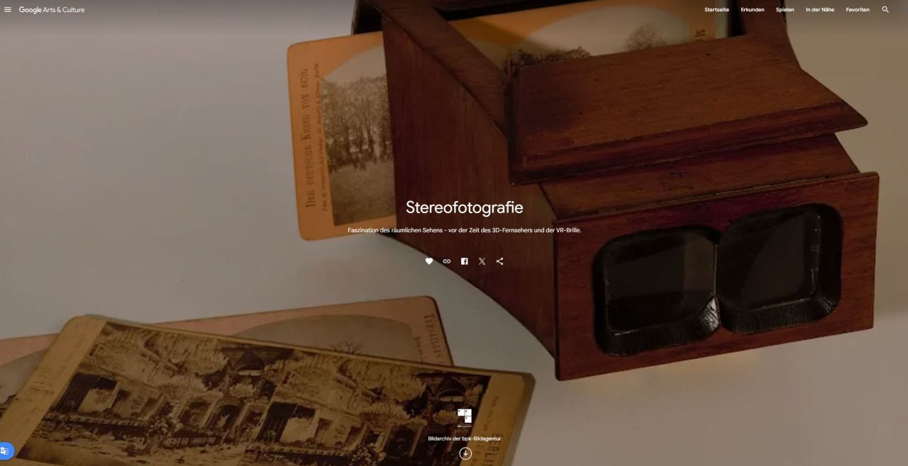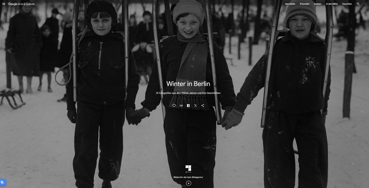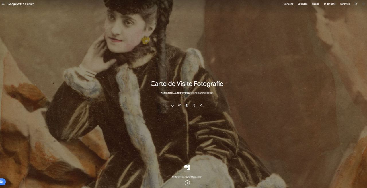 Google Arts & Culture ist eine kostenlose Online-Plattform, die es Nutzer:innen ermöglicht, Kunstwerke und Fotografien aus der ganzen Welt zu entdecken und zu erkunden. Die Webseite bietet virtuelle Ausstellungen, Sammlungen und interaktive Erfahrungen, um Kunst und Kultur auf innovative Weise zu erleben.